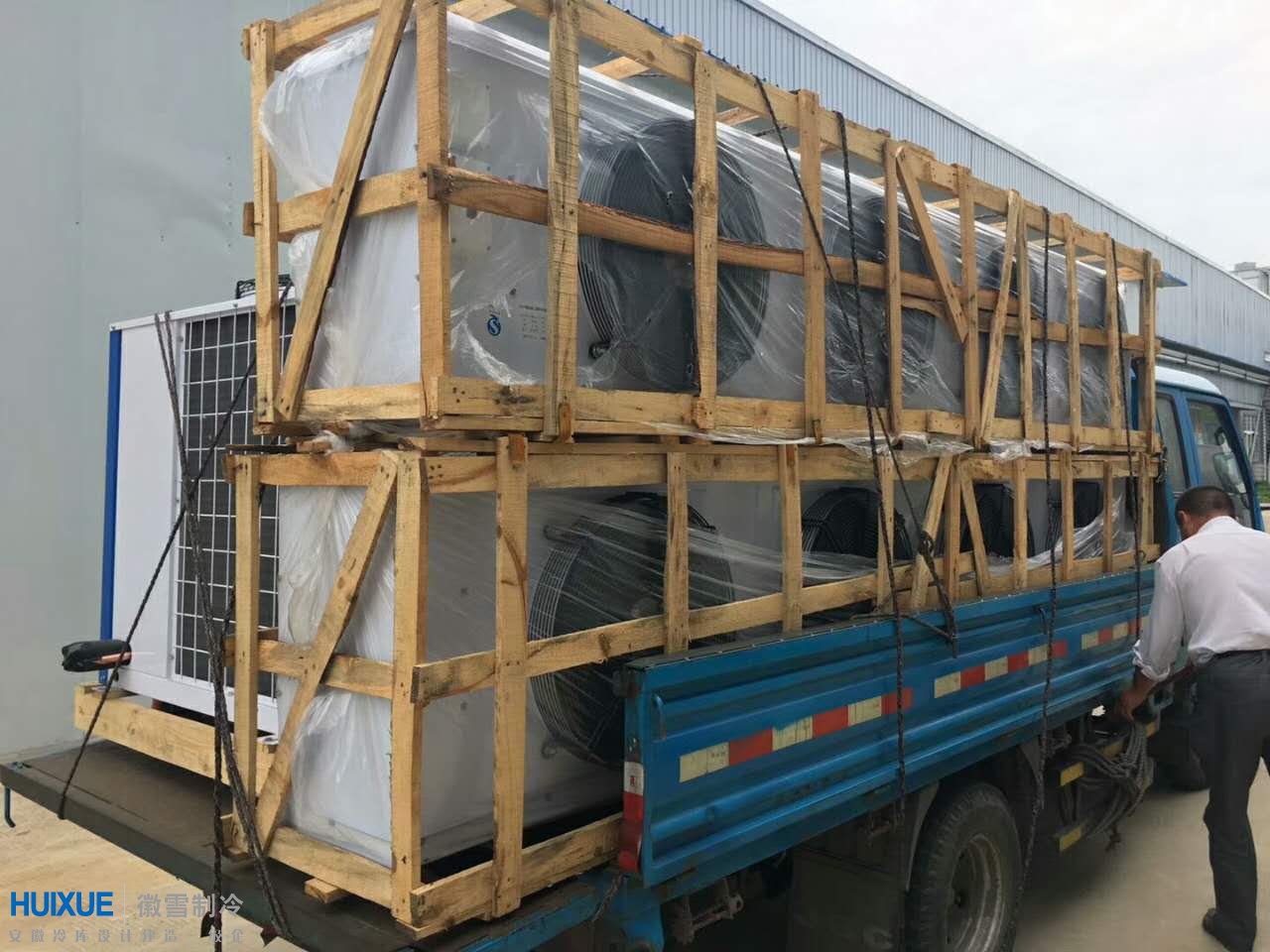 本次為滁州市申龍食品有限公司設(shè)計建造的為座400立方食品冷凍庫,制冷主機(jī)采用2套15HP比澤爾箱式風(fēng)冷制冷機(jī)組,蒸發(fā)器采用HUIXUE高效冷風(fēng)機(jī),電器控制采用HUIXUEPLC微電腦自動控制系統(tǒng)。