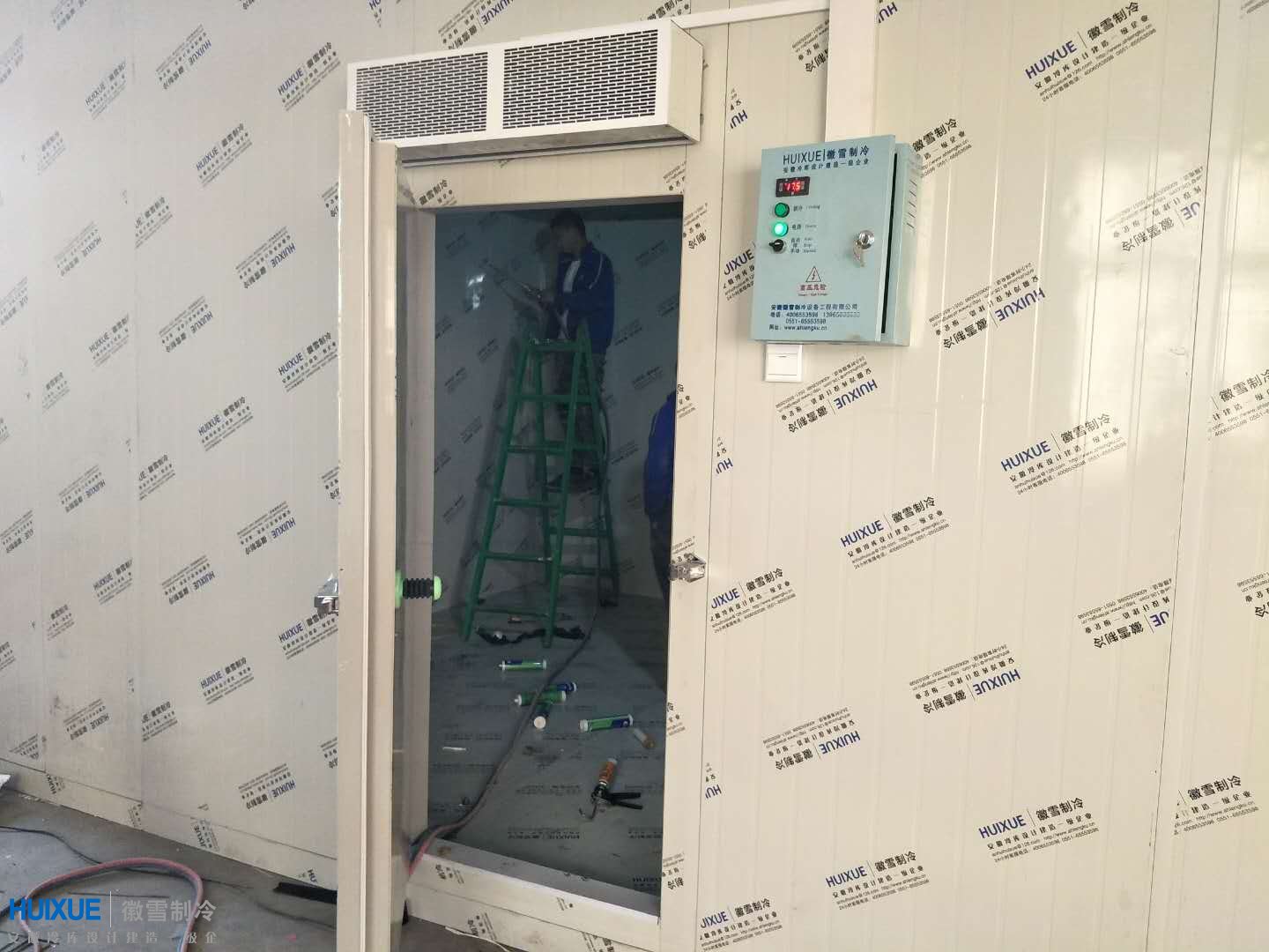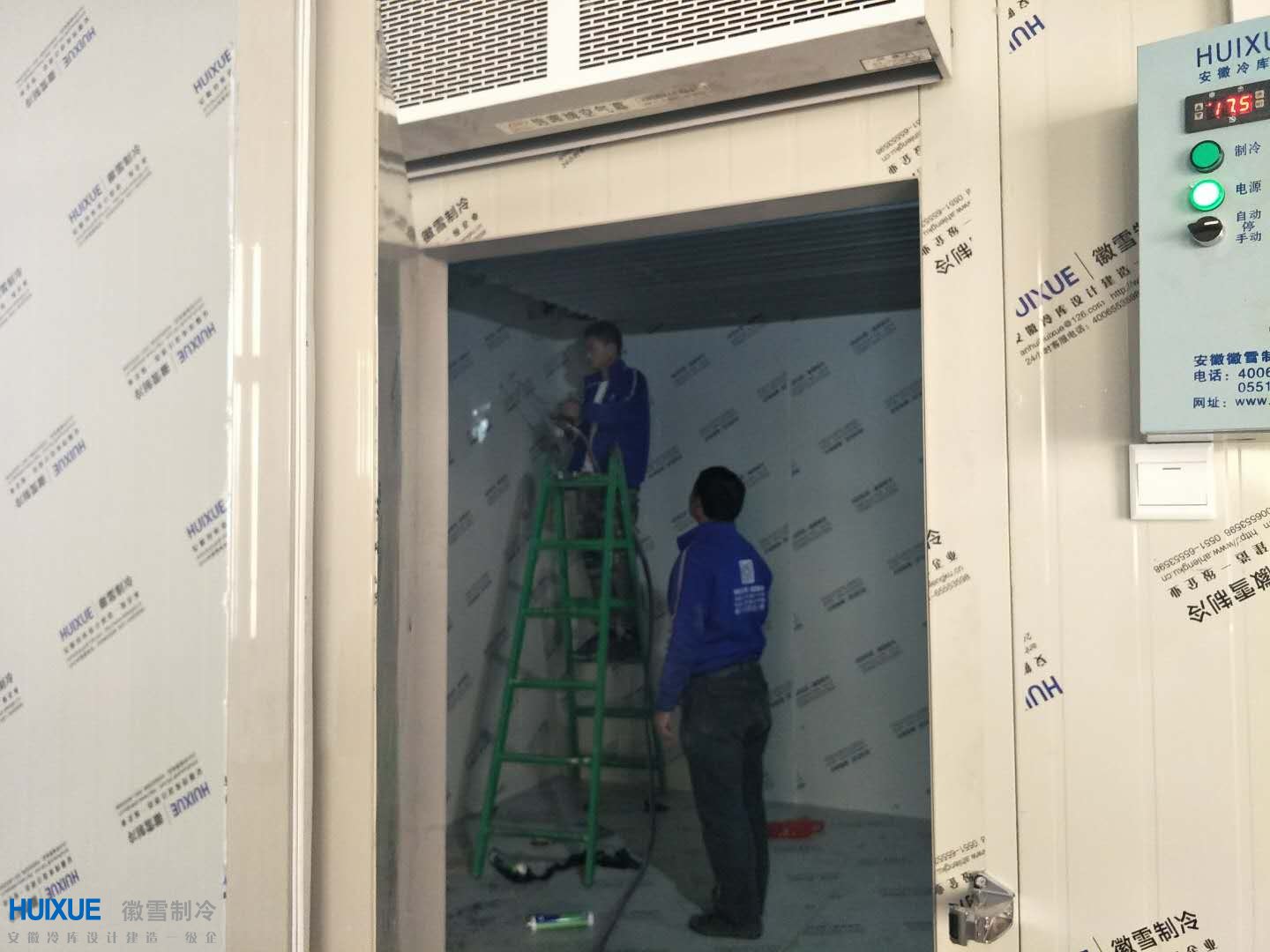 本次為逍遙獅子酒肉店(安徽漢易餐飲管理有限公司)設(shè)計(jì)安裝建造的為座-18度冷凍庫,冷庫庫體保溫采用我司自主品"HUIXUE"雙面彩鋼高密度聚氨酯保溫板,制冷設(shè)備采用沈陽谷輪風(fēng)冷制冷機(jī)組。