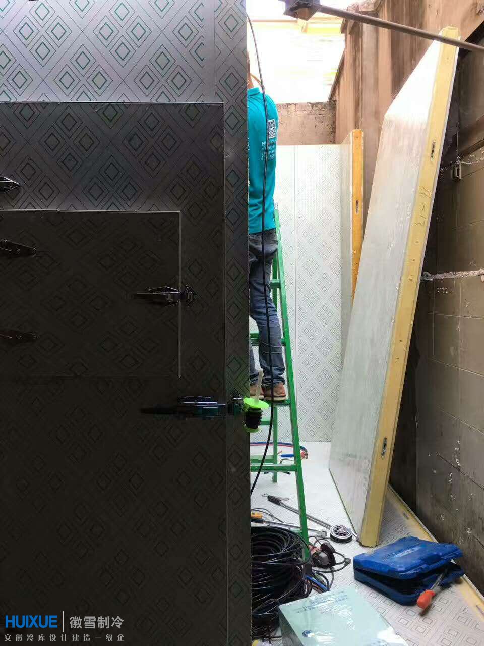 本次為《0048》香辣蝦滁州定遠店設計建造的為座冷凍庫,冷庫保溫系統(tǒng)采用HUIXUE自主研發(fā)生成的雙面彩鋼聚氨酯冷庫保溫板,制冷設備采用艾默生谷輪風冷制冷機組,控制系統(tǒng)采用HUIXUE自主研發(fā)設計的PLC微電腦自動控制系統(tǒng)。