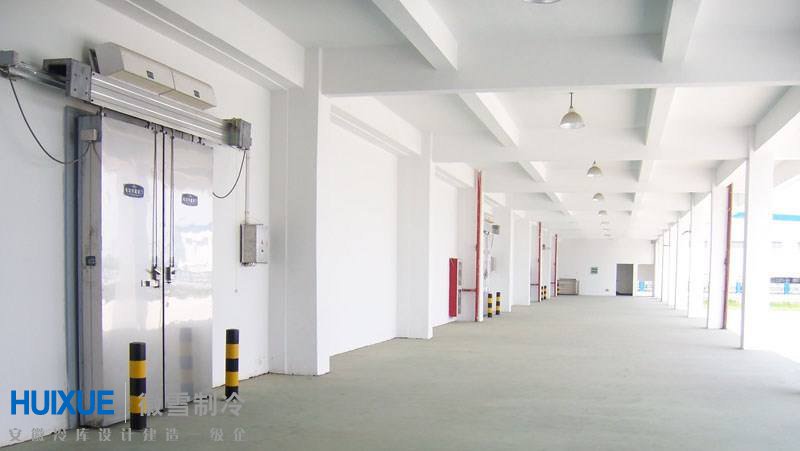 貯藏品種不同,要求室溫也不樣,般是0-4℃之間,冷卻設(shè)備采用空氣冷卻器,安裝在庫房端的中央,采用多噴口的風(fēng)道均勻送風(fēng)。
