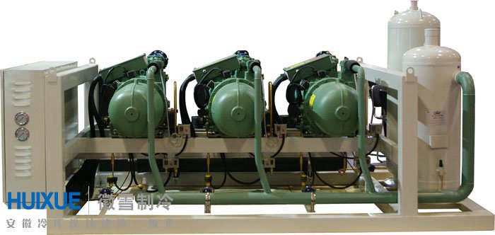 制冷壓縮機(jī)是冷庫(kù)設(shè)備的心臟,它消耗的能量在整個(gè)制冷系統(tǒng)中占很大的比例。對(duì)于特定的制冷量,選擇不同的壓縮機(jī)直接關(guān)系到運(yùn)行的能耗。在大中型冷庫(kù)的建設(shè)中,液氨制冷螺桿制冷壓縮機(jī)已有取代活塞式壓縮機(jī)的趨勢(shì)。在冷凝溫度35℃,蒸發(fā)溫度為-28℃(-33℃)的典型工況下,當(dāng)制冷量大于450kw時(shí),應(yīng)選用螺桿壓縮機(jī),在初期投資、運(yùn)行費(fèi)用等方面均比活塞式壓縮機(jī)合理。但在選用機(jī)組數(shù)量時(shí),必須考慮到冷庫(kù)低峰負(fù)荷、中等負(fù)荷和高峰負(fù)荷時(shí)機(jī)組能量的合理搭配,避免螺桿壓縮機(jī)能量調(diào)節(jié)在50%以下的工況長(zhǎng)時(shí)間運(yùn)行。對(duì)蒸發(fā)溫度在-45℃左右的大中型速凍庫(kù),可采用由多臺(tái)大制冷量的螺桿壓縮機(jī)組成的組配式雙壓縮制冷系統(tǒng),節(jié)能效果顯著。